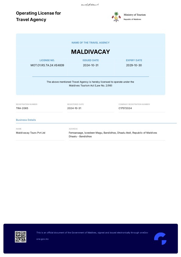 Destination Management Company, Local Tour Operator based and registered officially in Republic of Maldives and Russia. For us it's not just a selection of packaged tours or separate services, we specialize in curating unforgettable experiences that cater to travelers' needs